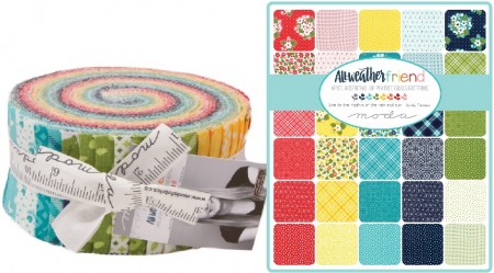 All Weather Friend – Jelly Roll by April Rosenthal for Moda fabrics. This Jelly Roll contains forty 2 1/2″ x 45″ strips of fabric rolled up and tied in a cute ribbon. Fabric is all new, 100% premium Moda cotton. See photos of entire fabric collection above. More in this collection available in our store while supplies last. Use store search engine to find.