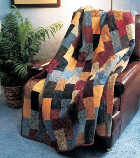 Make this large (72″ x 84″) simple, cozy quilt for that special guy in your life.