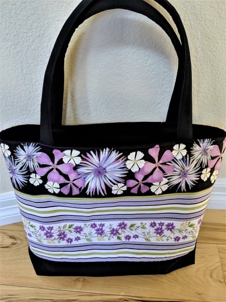 Shop with the prettiest floral bag around! Kit includes all the fabric pack with all the fabric you need to make this bag exactly as shown, including lining. Finished bag will measure approximately 16 1/2″ wide at the top x 12″ tall x 4″ deep. Fun and easy to sew! Kit contains all 100% cotton fabric and pattern. Interfacing is optional and not incl.