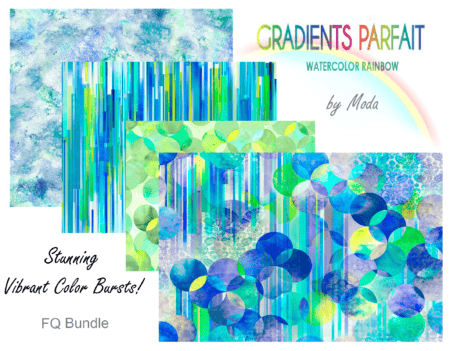 This set contains one Fat Quarter from each of the 4 fabrics shown. A fat quarter or FQ is 1/4 of a yard, only cut on the half yard, so instead of being 9″ x 44″, it measures approx. 18″x22. Many quilters and crafters prefer this cut. 100% Premium Moda Cotton