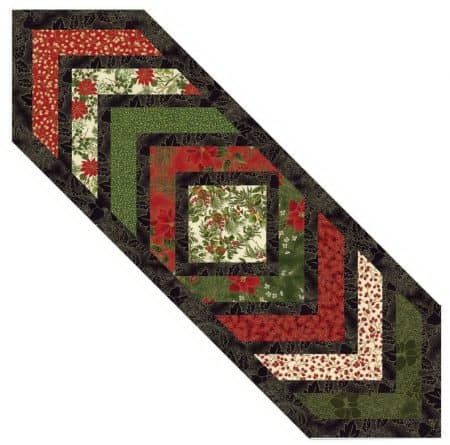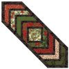 Easy and fast table runner with Moda metallic prints!…. This quilt kit includes an easy color illustrated pattern and all the fabric you need to make this festive winter table runner quilt top. Finished runner measures approx. 13 1/2″ x 45 1/2″. Kit includes binding. Please note that the center square is not fussy cut. Your kit will contain a square of fabric from a beautiful print of holly, pine cones and birds. Batting and backing not included.