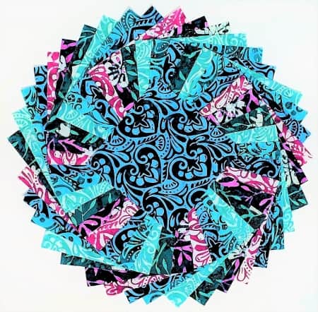 Seaside Jewels 5″ Batik Charm Pack. This 42 piece set (7 each of 6 different prints) contains all the fabrics exactly as shown in 5″ charms / quilt squares. Fabric is all new, 100% premium quality Moda cotton batik. More in this collection available in our store while supplies last. Use store search engine to find.